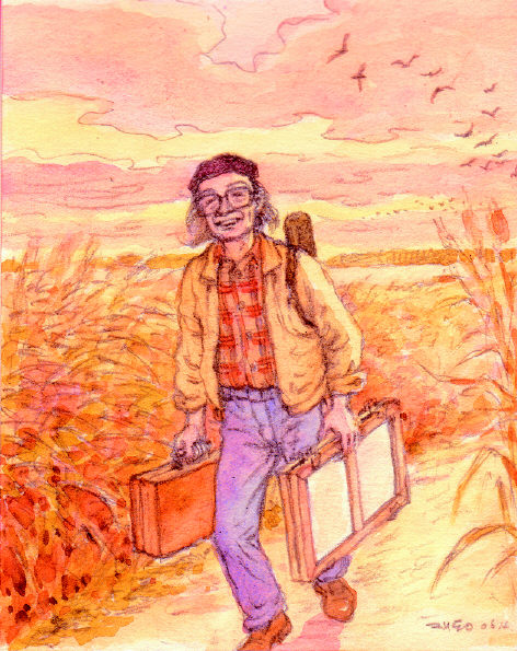 용사 돌아오다 1969년, 부산, 내가 고등학교 미술반이었을 때 한 친구 왈, 신창호 화실이라는 데가 있는데 그 선생님 실력은 좋은데 남자는 안받는다는 것이다. 나는 있을 수 없는 일이라며 친구들을 이끌고 쳐들어가 선생님으로부터 막걸리까지 얻어먹어 가면서 입성에 성공하였다. 그리고는 화실회비를 못내 쩔쩔 매고 있는 나를 선생님은 장학생으로 삼으셨다. 또 당시 열여덟이던 나에게 -선생하고 제자가 뭐꼬. 인자 자네하고 나하고는 대결인기라. 하시고는 야외 스케치를 마치고 돌아 오는 나에게 -용사 돌아 오네! 하시며 격려해 주셨다. 그때 나는 정말 용사가 된 기분이었다. 신창호 선생님은 갈대 가득한 낙동강의 철새 도래지 을숙도를 무척 좋아하셨는데 평생 그곳을 그리다시피하여 ‘을숙도 화가’라는 별명이 붙을 정도 였다. 그리고 낙동강에 하구둑이 생긴다는 소식을 듣고 혼자 우셨다고 한다. 5년 전 마지막으로 선생님을 뵈었을 때 말씀이
