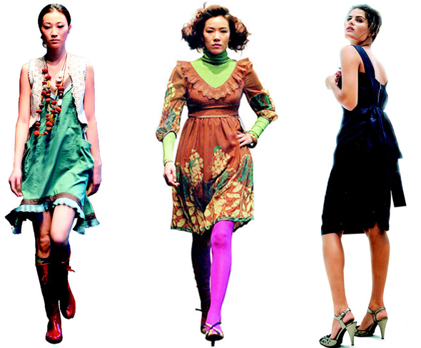 원피스의 장점 가운데 하나는 위·아래 맞추려고 고민할 필요가 없다는 데 있다. 게다가 귀엽고 사랑스러운 분위기를 내는 데는 그만이다. 올 봄 관심을 끄는 원피스로는 셔츠 모양, 허리 선이 위로 올라온 스타일이 꼽히고 있다. 깜찍한 원피스는 비단 봄·여름에만 인기를 끈 게 아니다. 요즘엔 겨울에도 안에 목폴라나 면티를 입은 뒤 원피스를 걸치고 아래 청바지나 레깅스를 입는다. 텔런트 한혜진의 스타일리스트 이승영씨는 “셔츠 위에 여름에 입는 하늘하늘한 쉬폰 원피스를 조끼처럼 겹쳐 입기도 한다”고 말했다. 칼라와 앞에 단추가 달린 셔츠 스타일은 깔끔하고 발랄한 분위기를 풍긴다. 단추를 열고 입으면 트렌치코트 같은 느낌도 준다. 박성희 베스띠벨리 디자인 실장은 “단조로울 수 있는 셔츠 스타일에는 허리를 강조하는 굵은 벨트를 매거나, 목걸이, 스카프로 강조점을 주면 좋다”며 “부츠나 스니커즈를 신으면 발랄하고 세련돼 보인다”고 말했다. 허리선이 가슴 바로 아래까지 올라온 에이치(H) 모양의 원피스는 여성스러움을 강조하는 데는 적격이다. 소재도 부드럽고 섬세한 것들이 쓰인다. 다리에 딱 달라붙는 청바지와 함께 입으면 색다른 느낌을 준다. 박 실장은 “깊게 파인 목선에 알록달록한 플라스틱 목걸이를 해주면 멋질 것”이라고 설명했다. 아무리 예쁜 원피스라도 체형과 맞지 않으면 빛을 발하기 어렵다. 박 실장과 배인주 데무 디자이너가 체형에 어울리는 원피스 고르는 법을 알려줬다.