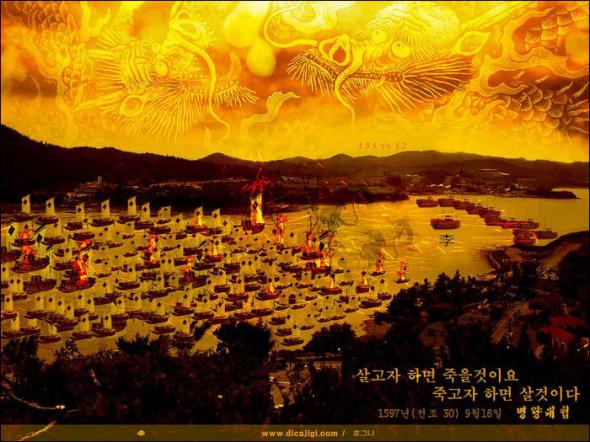 우리 민족의 역사상 가장 극적이었던 순간을 꼽으라면 나는 주저 없이 명량의 대승리를 첫손에 꼽는다. 1597년 9월 16일 미명(未明), 바다를 뒤덮은 일본함대가 거대한 수평의 폭포 같은 명량의 조류를 타고 거세게 밀어닥쳤다. 500척이 넘는 일본의 대 함대는 끝이 보이지 않았다. 감히 상상도 할 수 없는 거창한 전력(戰力) 앞에 나타난 것은 겨우 13척에 불과한 조선 함대, 1)무려 50대 1이 넘는 열세였다. 세계 역사를 통틀어도 그토록 차이가 나는 집단들이 정면으로 격돌한 사례가 없다. 5년 전, 임진왜란(壬辰倭亂)이 발발하자 망할 뻔 했던 나라를 혼자의 힘으로 구해내었던 불세출의 영웅 이순신도 50대 1의 열세를 극복할 수는 없었을 터였다. 그것은 상식의 문제였다. 지켜보던 백성들도 다만 시간이 문제일 뿐이라고 규정했다. 그날이 이순신과 조선 수군 최후의 날이라는 것은 누구도 의심하지 않았다. 이순신과 더불어 초라하게 전락한 조선수군의 최후가 한바탕 신명나는 추임새 속에 사라질 것인가? 이순신의 최후는 바로 조선의 최후였다. 그는 자신에게 내려진 사형선고를 스스로 집행하는 것 같은 착각마저 들었다. 그러나 이순신은 단호하게 칼을 뽑았다. 필사즉생 필생즉사(必死卽生必生卽死)의 여덟 글자를 불사(不死)의 주문처럼 외치며 피른 본 상어 떼처럼 밀려드는 적들에게 격돌해 갔다. 그는 자신의 몸과 함대를 마개로 삼아 명량을 틀어막고 죽음을 갈구하는 악귀처럼 싸웠다. 본능적인 죽음의 공포에 직면하여 물러서려는 부하들과 이미 물러선 부하들을 질타하여 얼마나 싸웠던가? 마침내 이순신은 자신의 몫으로 결정되어진 죽음과 패배를 베어버렸다. 그는 텃밭에 씨를 넣으려는 농부처럼 거침없이 바다를 갈아엎었고 적들은 쟁기에 토막 난 지렁이 떼처럼 꿈틀거리며 비명을 질러대었다. 이순신의 장검이 크게 베어질 때마다 일본 함대는 사쿠라의 군락처럼 화사하게 불타올랐고 지글지글 불타는 적병들이 알아들을 수 없는 비명을 지르며 바다에 뛰어들었다. 전투가 벌어진 지 반나절도 지나지 않아 일본군은 처참하게 패배했다. 결코 질 수 없었던, 아니 진다는 것은 꿈에도 상상조차 하지 못하던 전투의 결과는 전멸에 가까운 대참패였다. 감히 대낮에 서리를 하러 왔다가 혼쭐난 아이들처럼 비명을 지르면서 달아나는 일본군들은 이순신이라는 세 글자를 죽을 때까지, 아니 죽어서도 잊을 수 없었다. 그렇게 거대한 일본의 주력은 산산이 분해되었고 그들을 보낸 도요토미 히데요시(豊臣秀吉)의 대야망은 명량의 거친 물목에 침몰 당했다. 두 번째의 결정적 참패를 같은 인물에게 당한 도요토미 히데요시는 그만 피를 토하고 쓰러졌다. * 주석 1) 명량해전이 끝난 다음 이순신의 보고에 의하면 130척과 싸워 그 가운데 31척을 격파한 것으로 되어 있다. 그러나 그것은 사실이 아니라는 학설이 지배적이다. 당시의 일본군은 불리한 전쟁의 대세를 일거에 역전시키려고 시도했으며, 그러기 위해서는 최소한 500척 이상의 대함대가 필요했다는 것이 정설이다. 상식적으로 생각해도 운명이 걸린 작전에 겨우 130척을 투입할 리가 만무하다. 그렇기 때문에 명량에서의 이순신은 최소한 500척 이상의 대함대를 맞아 싸웠다는 결론이며, 거기서 50대 1이라는 격차가 나오는 것이다. 게다가 일본함대를 거의 섬멸하다시피 했다. 그 근거는 당시 참전했던 일본 장수들이 작성한 문서가 증거로 제시되는데 1척에 50명만 잡아도 무려 2만 명 이상을 죽였다는 이야기가 된다. 실로 엄청난 대전과지만 이순신은 그 사실을 감춰야만 했다. 간신들의 모함으로 이순신을 죽이려던 왕이 믿어줄 리도 없거니와, 그 사실이 알려지면 이순신을 잡아들이고 원균을 등용시킨 왕의 실책이 만천하에 알려지게 되는 셈이니 그 경우에도 왕이 가만히 있을 수 없게 되는 것이다. 결국 엄청난 공을 세우고도 축소시켜 보고할 수밖에 없었다는 결론인데, 당시의 조선이 얼마나 한심했었는지 짐작이 가는 대목이라고 하겠다. 백번을 양보해서 그 보고가 사실이라 해도 130척이면 무려 10배에 이르는 전력이 아닌가? 10배나 되는 적을 산산이 격파한 것도 세계 역사상 유례가 극히 드물다.
