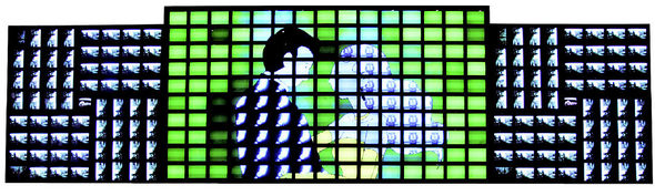 | 고 백남준씨가 2002년에 서울시립미술관에 설치한 작품 ‘서울 랩소디’. 서울과 관련된 도상과 미술관의 이미지를 소프트웨어와 결합했다. 김종수 기자 jongsoo@hani.co.kr |