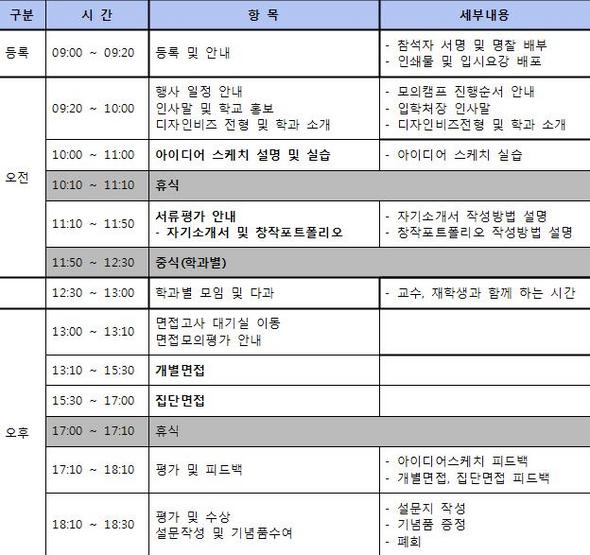 - 수험생을 위한 “디자인비즈 입학사정관전형 모의캠프” 8월 14일 개최