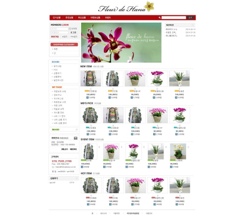 <‘샵이지’를 통해 제작이 된 ‘하나플라워’ 쇼핑몰> 자료제공 : 샵이지