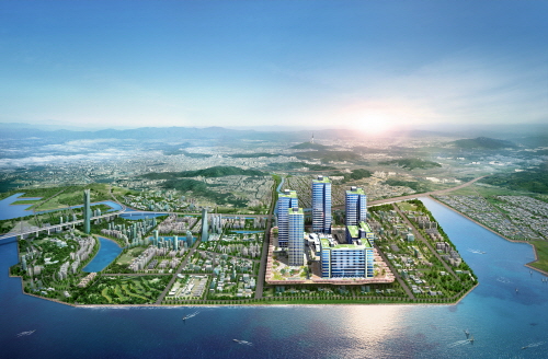 고층 빌딩들과 잘 닦인 도로, 곳곳에 보이는 녹지 그리고 바라다보이는 푸른 바다, 쾌적한 업무 환경을 갖추고 있는 송도국제도시에 매머드급 지식산업센터가 들어설 예정이다.