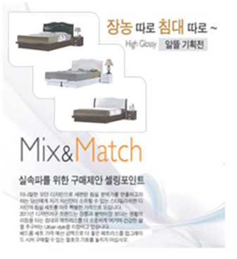 세련되고 미니멀한 디자인, 조형미 넘치는 헤드보드 기둥의 심플함과 릴렉스하고 프레쉬한 하이그로시 패턴으로 젊은 감각을 자유스럽게 표현하고 있는 침대이다.