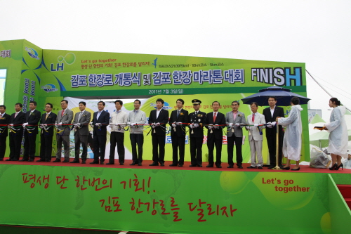 한강신도시가 사통팔달 교통 특구로 거듭난다. 김포의 자유로로 불리는 김포 한강로가 지난 3일 개통됐다. 이 날 오전 9시 김포한강로 개통식 및 ‘2011 한강로 마라톤대회’가 열려 약 25000여명의 인파가 몰리는 등 대중들의 뜨거운 관심을 실감케 했다.