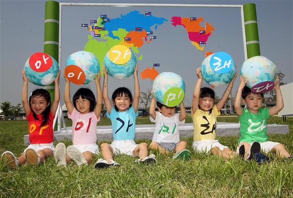 보건복지가족부와 ‘아름다운 가게’가 서울을 비롯한 5개 대도시에서 저소득층의 출산 및 육아를 지원하기 위한 ‘미래둥이 나눔장터’ 행사가 15일 서울 한강시민공원 잠원지구 행사장에서 열려 참가 어린이들이 ‘아이가 미래다!’ 슬로건을 붙인 세계지구본공을 들어 보이고 있다. 이 행사에는 약 2만5천여점의 출산·육아 관련 기증 물품이 판매되며 행사 수익금 전액은 저소득층의 출산과 육아 지원금으로 기부될 예정이다.