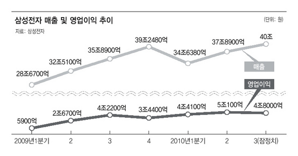 3분기 매출 40조로 늘었지만 영업익 5조달성 실패