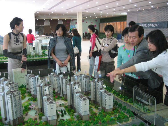 지난 12일 경기 성남 판교새도시 2차 분양 당첨자 발표 직후 당첨자들이 본보기집을 찾아 자신이 입주할 동, 호수 등을 확인하고 있다. 대한주택공사 제공
