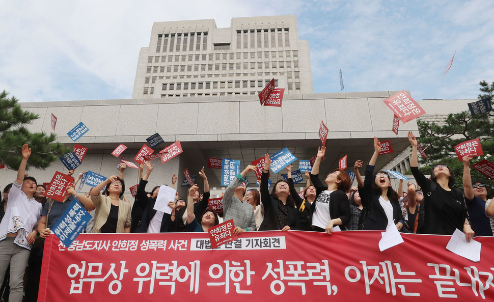 On Sept. 9 the Supreme Court’s second division under Justice Kim Sang-hwan upheld an original court ruling against former South Chungcheong Province Governor Ahn Hee-jung, who was accused of sexually assaulting executive secretary Kim Ji-eun. The decision came 554 days after Kim’s initial allegations in March of last year, which – together with accusations of sexual harassment by prosecutor Seo Ji-hyeon – helped to fuel a MeToo movement in South Korea. This episode involving Ahn, someone once regarded as a strong presidential contender and a vocal figure on gender-related issues, came as a huge shock to South Korean society and served to foreground the issue of the abuse of power to commit sexual crimes. We welcome this verdict for establishing standards of “power” and “victimlike behavior” when it comes to sexual assault in the workplace.