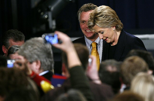 미국 민주당 대선주자 힐러리 로드햄 클린턴 상원의원(뉴욕주)이 3일 아이오와주 디모인에서 열린 민주당 코커스(당원대회)의 밤 집회에 뒤이어 무대에서 내려오고 있다. AP 연합