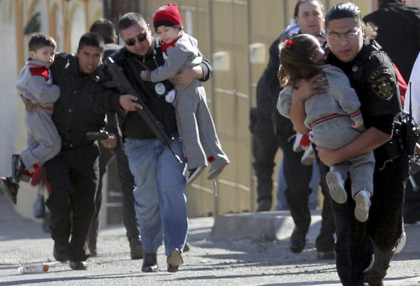 미국과의 접경지역인 멕시코 티후아나에서 17일 총격전이 일어나, 경찰이 어린이들을 대피시키고 있다. 경찰의 마약조직 소탕작전 뒤 일어난 총격전으로 4명이 부상을 입었고, 학교엔 긴급대피령이 내려졌다.