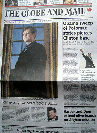 이 남자는 자신의 어머니가 케네디가 암살된 뒤 대통령직을 승계했던 부통령 린든 존슨 집안과 관계있는 것으로 안다고 밝혔으나, 다른 사항에는 일체 함구하는 것으로 알려졌다. 미국의 타블로이드 신문인 뉴욕포스트는 메일지 보도가 나가기 전인 지난 7일 뉴욕의 유명잡지 베너티 페어(Vanity Fair)가 18개월 동안 케네디의 사생아일 가능성이 제기된 한 밴쿠버 거주자를 추적해 왔다고 보도, 세인의 관심을 불러 일으킨 바 있다. 메일지는 그 후 케네디를 자신의 생부라고 주장하는 그 남자가 자발적으로 접촉을 시도해 왔고, 그는 케네디가의 협조를 얻어 DNA 테스트를 받기를 원하지만 어떤 금전적 이익도 취할 의사가 없음을 밝혔다고 보도했다. 메일지는 기사에서 그가 케네디 전 대통령의 모습을 빼닮았고, 큰 키에 몸매가 날렵하고 담갈색 눈에 얼굴에 주근깨가 있으며 특히 '케네디 치아'라고 부를 만큼 가지런한 이가 인상적이라고 묘사했다. 메일지는 그의 출생이 케네디와 관련이 있다는 어떤 증거도 없는 상황이라고 밝혔으나, 이날 1면에 그의 대형 사진을 전격 게재함으로써 단순히 독자의 호기심을 자극하는 차원의 보도가 아님을 분명히 했다. 164년의 역사와 전통을 자랑하는 메일지는 발행부수에서 토론토스타에 이어 캐나다에서 두 번째지만, 권위와 상징성에선 캐나다를 대표하는 엘리트신문으로 평가받고 있다. 신상인 통신원 sanginshin@yna.co.kr (밴쿠버=연합뉴스)