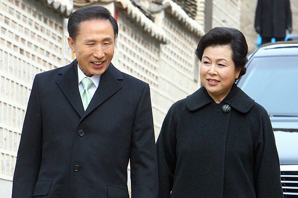 25일 이명박 대통령과 영부인 김윤옥 여사가 국회의사당에서 열리는 제17대 대통령 취임식에 참석하기 위해 서울 가회동 자택을 출발하고 있다. 연합뉴스