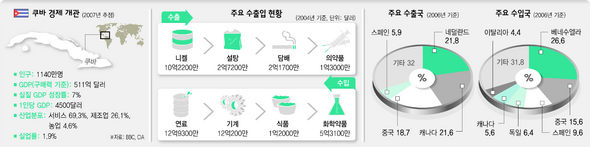 미 금수조처 47년·서비스업 76% 불균형 심각“중국처럼 개방” 목소리…화폐개혁 선결 과제 “칫솔 하나를 사려고 이틀을 일해야 한다.” 한 쿠바인이 24일 <비비시>(BBC) 방송 인터뷰에서 털어놓은 얘기다. 쿠바가 처한 열악한 경제현실을 단적으로 보여준다. 라울 카스트로 체제에 대한 국민들의 기대는 먹고사는 문제가 얼마나 나아지느냐에 맞춰져 있다. 쿠바인들은 대부분 한달에 약 15~19달러를 받아 살아간다. 정부에서 교육, 의료, 식품 등 기초 생활서비스를 무료로 제공해 “굶어죽는 사람은 없다”지만, 쓸 돈이 없으니 살림살이는 팍팍할 수밖에 없다. 실질구매력(PPP) 기준 2007년 1인당 국내총생산(GDP)은 4500달러다. 중국(5300달러)과 필리핀(3300달러)의 중간 수준이다. 쿠바 경제의 최대 걸림돌은 47년간 지속된 미국의 금수조처다. 쿠바는 지난해 금수조처로 그동안 890억달러의 경제적 피해를 입었다고 밝힌 바 있다. 유엔 총회에서 금수 해제 촉구결의안이 16번이나 통과됐지만, 미국은 요지부동이다. 피델 카스트로가 퇴임을 밝힌 뒤에도 “조만간 금수조처 해제는 없다”는 말만 되풀이하고 있다. 라울이 쿠바 내부에서 경제회생의 길을 먼저 찾아야 하는 까닭이다. 그렇지만 경제구조는 불균형 그 자체다. 관광이 국내 경제를 거의 지탱하고 있다. 2007년 국내총생산에서 관광 등 서비스업이 차지하는 비중은 76%나 된다. 1989년 27만명이던 관광객은 2006년 220만명으로 급증했다. 1989년 옛 소련의 붕괴 직후 ‘특별 내핍’ 기간의 어려움에선 벗어났지만, 니켈·설탕·담배 등에 절대적으로 의존하는 수출구조에도 별 변화가 없다. ‘실용주의자’로 평가받는 라울에 쏠린 기대 만큼 그의 어깨는 무겁다. 알베르토라고 밝힌 쿠바인은 <에이피>(AP) 통신에 “왜 우리는 공산주의 국가면서도 마음대로 많은 돈을 벌고, 자동차와 휴대전화를 살 수 있는 중국처럼 될 수 없냐”며 중국식 경제개방에 대한 바람을 얘기했다. 라울이 쿠바를 지탱하는 관광산업 확대를 주도했다는 점은 이런 기대를 키우고 있다. 약 15만명에 이르는 자영업자도 늘어날 것이라는 전망이 나오고 있다.