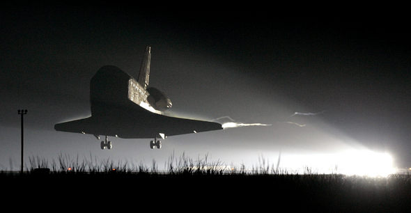 미국의 우주왕복선 인데버호가 25일 오후 8시39분께 플로리다주 케이프커내버럴의 케네디우주센터에 착륙하고 있다. 지난 11일 지구를 떠났던 인데버호 승무원들은 일본이 제작중인 세계 최대 규모의 유인 우주 실험실 ‘키보’의 첫 부품을 국제우주정거장(ISS)에 설치하는 등의 임무를 수행했다. 케이프커내버럴/AP 연합