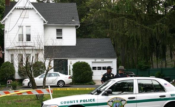 미국 뉴저지주의 한인 밀집지역 테너플라이의 한 주택에서 한인 3명이 흉기에 찔려 숨진 채 발견된 다음날인 17일, 경찰들이 사건 현장을 차단하고 있다.