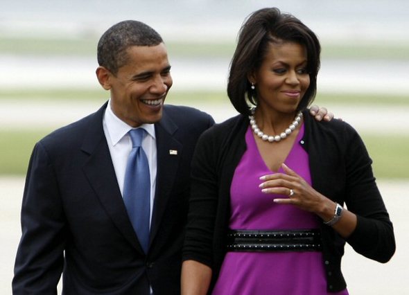 미국 역사상 첫 흑인 대통령 후보로 선정된 버럭 오바마가 3일 일리노이주 시카고에서 그의 부인과 함께 비행기에 오르고 있다. 시카고/AP연합