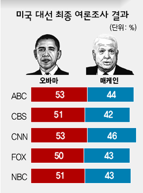 해리 업쇼(84) 전 일리노이대 교수는 “만약 오바마가 당선되지 않는다면 오바마 지지자들이 느끼는 심리적 충격은 매우 클 것”이라며 “자칫 매케인 지지자들과 충돌해 큰 소동이 일어날 수도 있다”고 말했다.