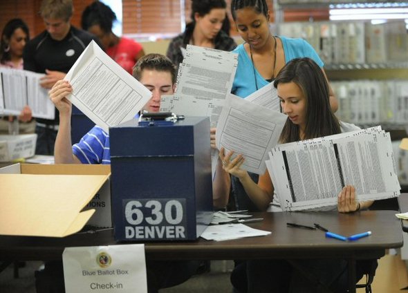 미대선개표 덴버 선관위 미대선투표 개표종사자들. (AP=연합뉴스)