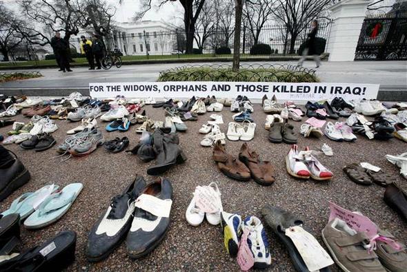 이라크에서 숨진 과부와 고아들을 위한 ‘신발들’