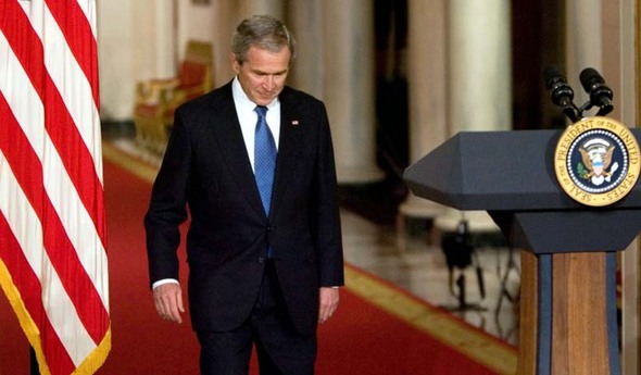 임기를 닷새 남겨둔 조지 부시 미국 대통령이 15일(현지시간) 워싱턴 백악관에서 마지막 고별 국정연설을 마치고 퇴장하고 있다. 워싱턴/AP 연합뉴스