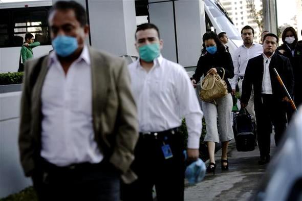 신종 인플루엔자 확산을 막기 위한 5일 동안의 강제휴업이 끝난 6일 멕시코시티에서 시민들이 마스크를 쓴 채 출근하고 있다. 멕시코시티/AP연합