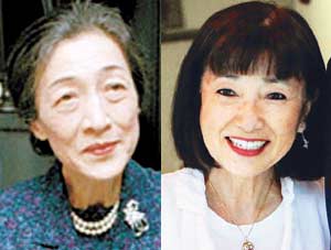 하토야마 유키오 민주당 대표의 어머니 야스코(87·왼쪽)와 부인 미유키(66).