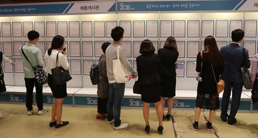 ‘채용 설명회’를 찾은 청년 구직자들이 채용 게시판을 살펴보고 있다. 박종식 기자 anaki@hani.co.kr