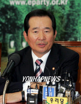 열린우리당 정세균 임시 당의장이 31일 오전 국회에서 기자간담회를 갖고 당 운영 방향 등을 밝히고 있다. (서울=연합뉴스)