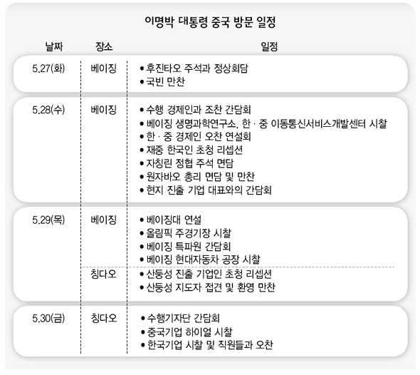 한-중 관계는 이명박 대통령과 후진타오 중국 국가주석의 27일 첫 정상회담을 계기로 ‘전략적 협력 동반자 관계’로 명목상 이전보다 한 단계 높아졌다. 그러나 그 속을 들여다보면 양국관계가 이런 외교적 수사에 걸맞은 관계를 구축했다고 보긴 어렵다. 공동성명에 ‘전략적 내용’ 없어 ‘속빈강정’ 우려중 ‘전략적 동반자 관계’ 범위 넓혀 의미 퇴색