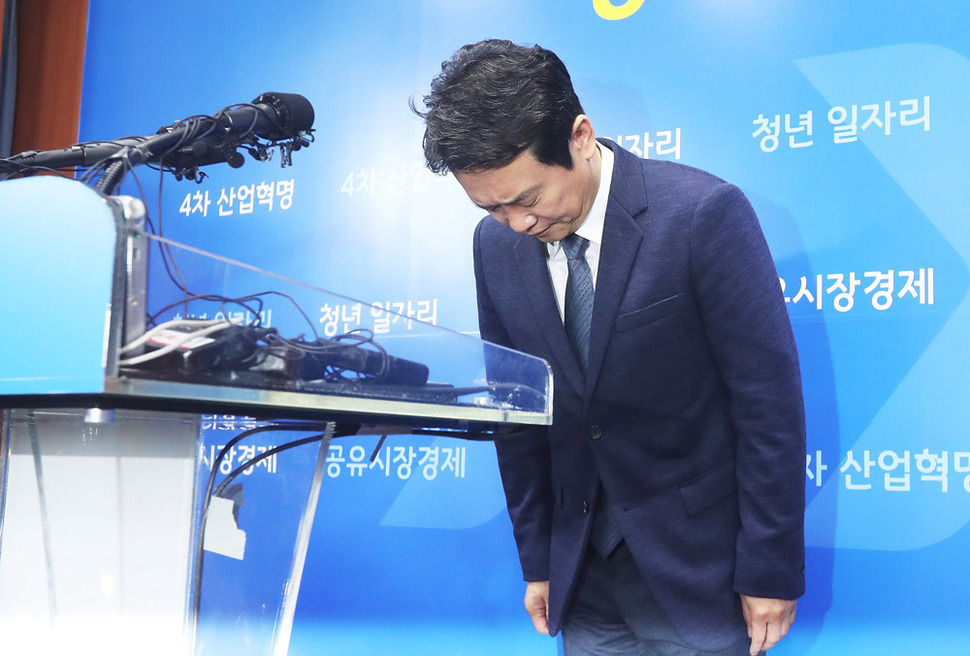 남경필 경기도지사가 19일 오전 경기도 수원시 경기도청 브리핑룸에서 기자회견을 열고 장남이 필로폰 투약 혐의로 경찰에 체포된 것에 대해 고개 숙여 사과하고 있다. 2017.9.19
