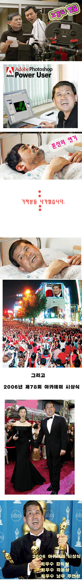 아카데미시상식서 주연상과 감독상을 받는다는 내용의 패러디.