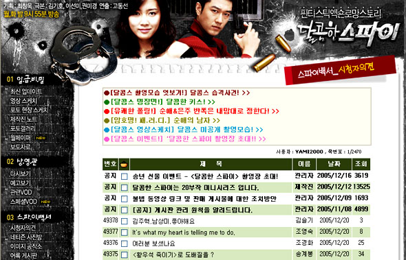 최불암 “나한텐 그 서류를 손에 넣을 수 있는 원천적 기술 있다” ‘과학적’ 연구에 대한 ‘비과학적’ 수사로 포장된 황 교수의 발언에 대한 다양한 반응이 잇따르고 있는 가운데, MBC 월화드라마 <달콤한 스파이>가 황 교수 발언을 패러디해 화제를 모으고 있다. 19일 밤 방송된 <달콤한 스파이>는 최불암(범구)과 김일우(현철)가 중대한 비밀이 담긴 문건에 대한 거래를 하는 장면에서 문건을 구하려는 김일우가 범구파 두목 최불암에게 “처음에는 최 선생한테 서류가 있다고 믿었습니다만 제보에 의하면 그 서류가 경찰에 넘어갔다는 설이 있다”면서 서류가 진짜 있느냐고 따진다. 이에 최불암은 “나한테는 그 서류가 어디 있든 내 손에 넣을 수 있는 원천적인 기술이 있다”라며 “중요한 건 나한테 그것을 갖겠다는 의지가 있느냐, 없느냐 하는거지 서류가 어디에 있느냐는 건 중요한 문제가 아니다”라고 ‘원천 기술’을 강조한다. 황우석 교수가 16일 기자회견에서 “분명히 줄기세포를 만들었고 줄기세포를 만들 수 있는 원천 기술을 지니고 있다”고 주장한 것을 패러디한 대목이다. 이어 김일우가 “자꾸 원천 기술만 말씀하시니까 제가 어디까지 믿어야 될지…”라고 머뭇거리자 최불암은 다시 “안 믿으면 국가적으로 엄청난 손실이 발생할 것”이라며 국익론을 들먹인다. 최불암이 나가자 김일우는 그에 대한 뒷조사를 지시하며 “원천 기술? 이 자식 이거 사기꾼 아냐?”라고 혼자말을 한다. ‘원천 기술’ 패러디는 20일 방송에서도 등장할 예정이다. 중요 문건이 언론에 보도됐다는 소식에 최불암의 부하가 “원천기술은 우리 형님한테만 있는 줄 알았는데 이제 보니 그 문서를 너도나도 다 갖고 있네요”라며 비꼰다. 이런 내용이 방송되자 ‘달콤스’ 게시판에서는 “재미있다”는 글에서 “아직 논란이 가시지 않은 상황에서 너무 성급했다”는 주장까지 반응이 엇갈리고 있다. 누리꾼 ‘김만수’는 “이거 완전 대박이다”며 “X파일과 황우석 사건을 교묘하게 패러디했다”고 말했다. 누리꾼 ‘김성호’는 “우리나라 드라마에서 이 정도 센스 넘치고 위트있는 풍자가 나올 줄이야…많이 발전했다”고 말했다. 누리꾼 ‘최상진’은 “내용중 최불암이 한 말은 좀 심했다”며 “아직 확실하게 결론난 것도 아닌데 지금 비아냥거리는 거냐”고 비판했다. 누리꾼 ‘이영은’도 “아직 진실이 밝혀지지 않은 상황에서 황 교수 사건에 대해 비꼬는 듯한 장면들은 좀 심했다”고 말했다. 누리꾼, 황우석 용어사전 만들어 “황우석식 설명 뜻풀이” 패러디는 문화방송보다 누리꾼이 앞서 시작했다. 누리꾼들은 “황 교수의 설명을 듣고서도 사실이 무엇인지 헷갈리다”며 황 교수가 했던 ‘말’에 대한 검증을 벌였다. 이런 황 교수의 주장에 대해 누리꾼들은 ‘황우석 용어 사전’을 만들고, 그동안 황 교수 관련 각종 어록을 정리해놨다. 황우석 용어 사전은 황 교수가 자신만의 개념으로 사용해 일반인들의 이해가 어려운 용어를 풀이해 놓은 것이다. 황 교수의 말만 듣고는 사실을 파악하기 어려운 까닭에 별도의 뜻풀이 사전을 만들어낸 것이다. 황우석 용어사전에서 ‘인위적인 실수’는 “조작”이라는 말이다. ‘한 개’는 “세 개 또는 열한 개랑 같은 숫자”라고 표현해놨다. ‘줄기세포’는 “신기루의 다른 말. 과학적 착시현상의 범사회학적 설명”이라며 “4차원적인 용어로 있었다가 없었다고 11개였다 8개였다가 다시 6개였다가 1개면 어떻고 3개면 어떠한가. 사진촬영시 1~2개의 물체가 11개로 분화한다”고 설명했다. ‘곰팡이’는 “있지도 않을 것만 오염시키는 고마운 것들”로, ‘서울대병원’은 “할 말 없고 귀찮을 때 수염 기르며 도를 닦는 곳. 출퇴근 장소로도 각광”이라고 설명해놨다.
