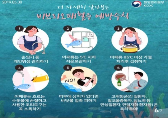 해마다 8~9월엔 감염병인 비브리오패혈증 환자가 집중적으로 발생하고 있어, 만성 간질환이나 당뇨병 등의 만성질환이 있는 경우 어패류를 충분히 익혀 먹는 등 각별한 주의가 필요하다. 비브리오패혈증은 치사율이 50%에 달한다.